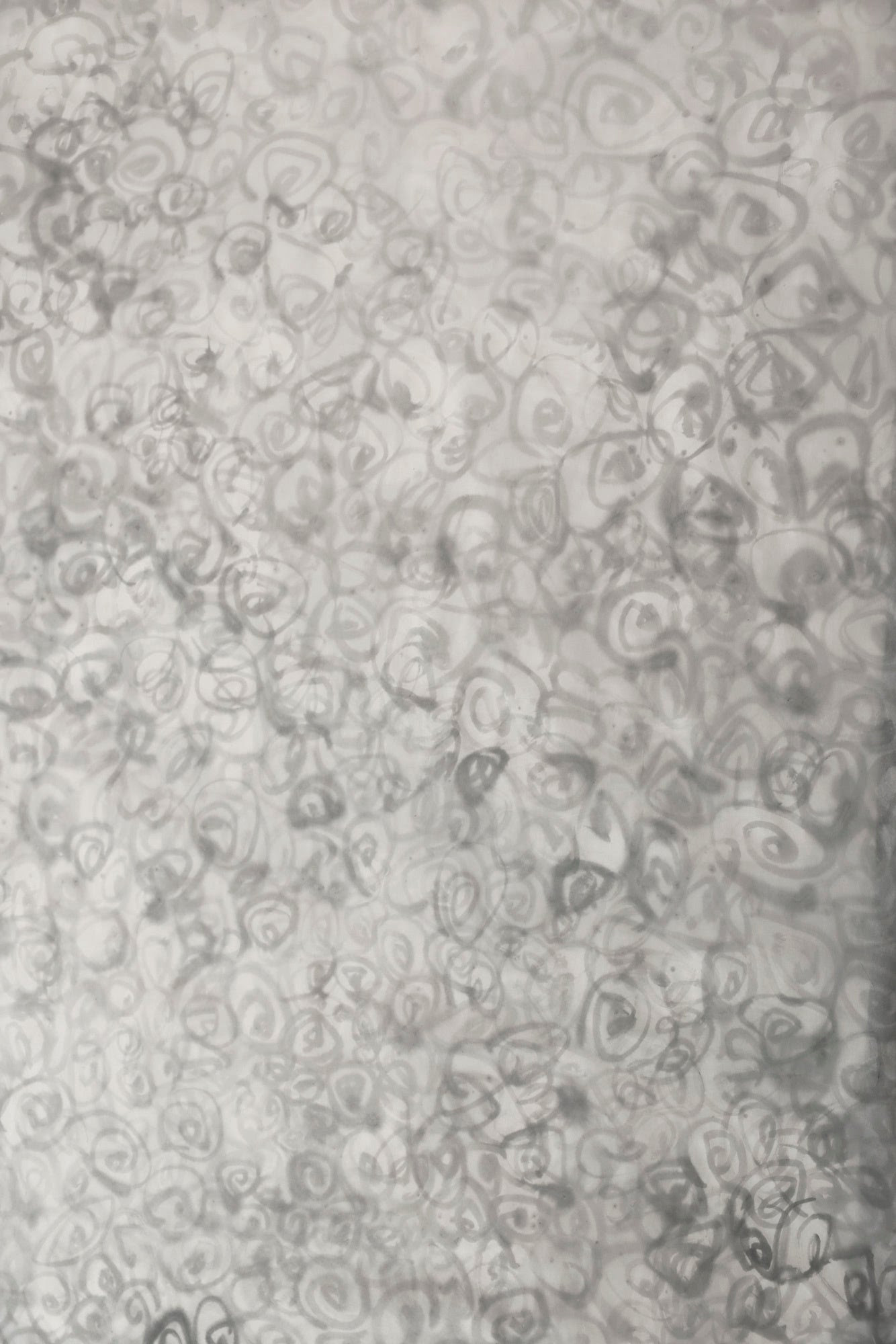白砂の穏やかな流れを眺めているうちに、時空に一瞬の凪が訪れ、心が穏やかになるとともに、気づきや閃きが浮かんできては、消えていきました。瞬間の凪の中で、白砂の流れは、直感としての光を示す渦の波動として変換され、やがて絵画のイメージとして現れることになりました。それが作品「凪」です。